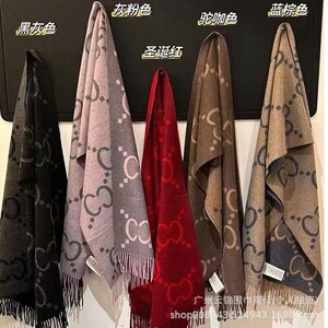 羊绒围巾女老花双G羊毛保暖双面羊绒流苏秋冬季黑灰粉咖啡棕围脖