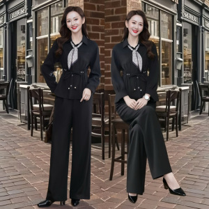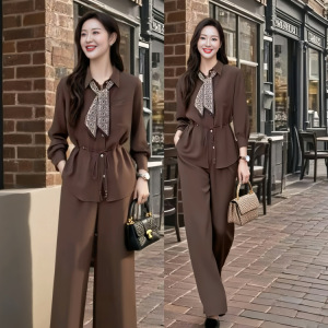 一件代发秋季新款时尚套装女2025丝巾洋气通勤减龄宽松显瘦两件套