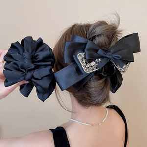 法式复古波点大蝴蝶结抓夹气质高级感马尾鲨鱼夹时尚小众发饰批发