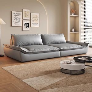 帆船真皮沙发客厅小户型轻奢现代简约直排意式实木双人皮沙发弹簧