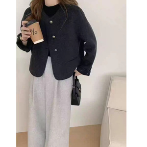 2025秋冬新款法式气质小香风双面羊绒大衣女小个子双面呢短款外套