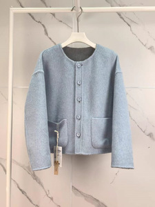 伊*L女装2025秋冬新款时尚圆领单排扣双面呢大衣短外套1GA170102