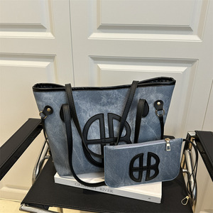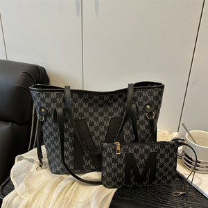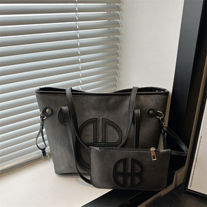 单肩质感唯美大容量字母印花2025新款潮简约休闲两件套腋下托特包