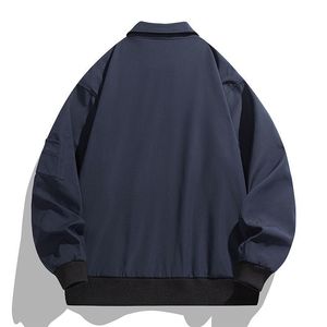 藏青色cleanfit夹克男春秋美式潮牌飞行员外套情侣痞帅立领棒球服