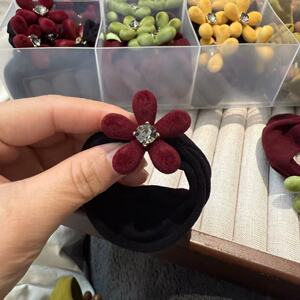 【实拍】秋冬新款时尚植绒花朵宽毛巾圈发圈高弹不伤发高马尾发饰