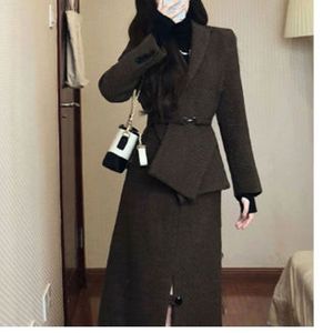 秋冬搭配一整套别致过年套装感小香风富家千金毛呢连衣裙