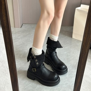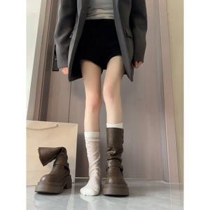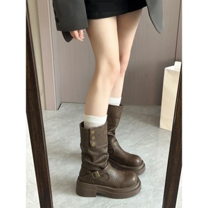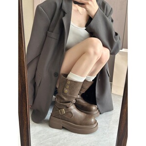 英伦风马丁靴女款2025新款春秋单靴棕色美拉德堆堆骑士高筒长筒靴
