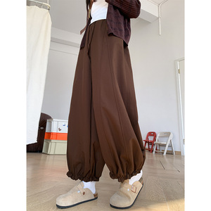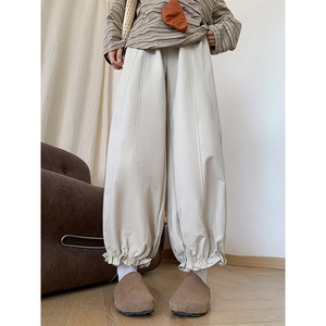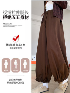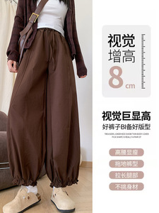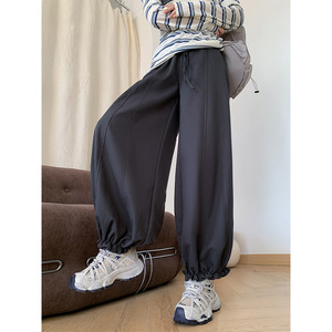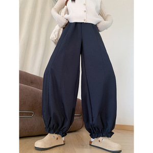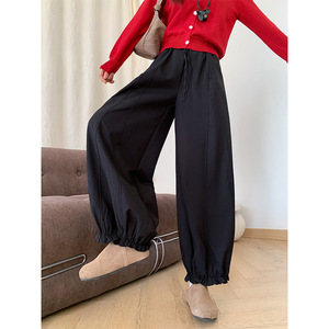 白灰色花苞阔腿裤女2025春秋新款高腰显瘦宽松木耳边九分阔腿裤