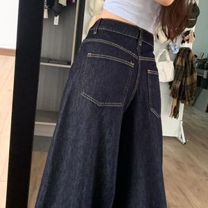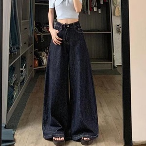 春秋小个子牛仔裤女时尚深蓝色梨形身材垂感阔腿裤子百搭直筒长裤