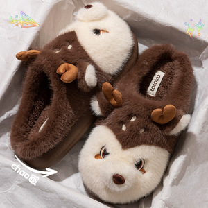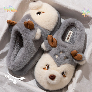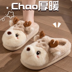冬小鹿棉拖鞋女冬季家用情侣款室内家居保暖男士棉拖毛毛鞋月子鞋