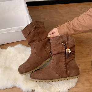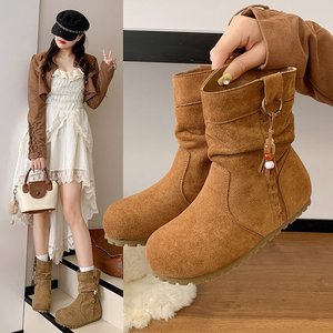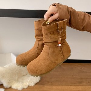 复古民族挂件马丁靴小短靴女2025秋冬套筒圆头堆堆靴显瘦马丁靴女