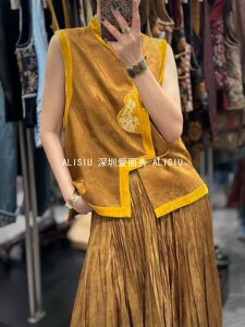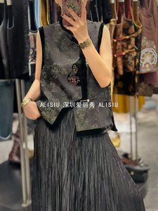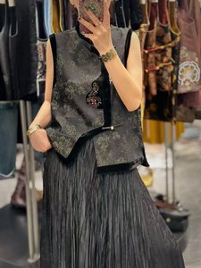 深圳南油早秋新中式国风复古真丝丝绒提花宽松上衣马甲