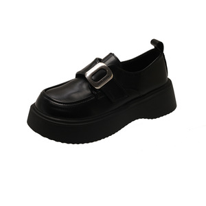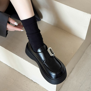 法式复古厚底小皮鞋女2025春秋新款英伦风配裙子黑色百搭粗跟单鞋