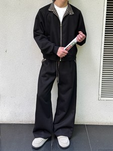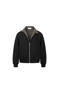 拼接格纹设计哈灵顿夹克男秋季新款复古休闲立领开衫短宽潮牌外套