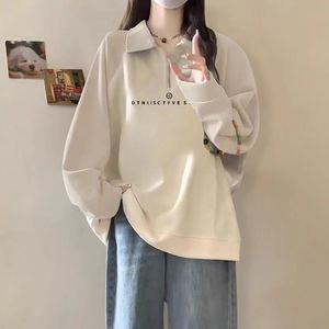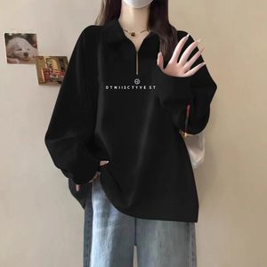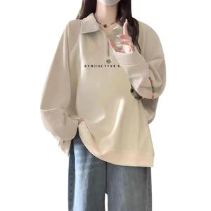 秋冬chic遮肉大码显瘦减龄polp领宽松半拉链卫衣女上衣180斤ins潮