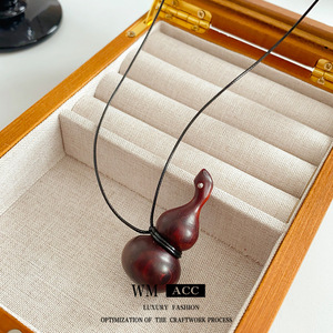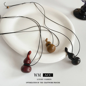木头葫芦吊坠时尚项链复古设计民族风简约毛衣链小众高级气质项饰