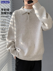 NASA慵懒风翻领毛衣男秋冬季2025新款宽松休闲老钱风亨利领针织衫