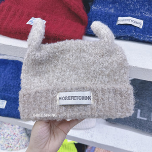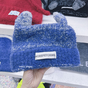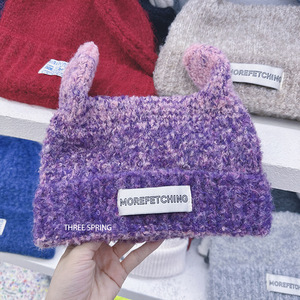 批发韩国2025年新款可爱耳朵翻边渐变针织帽休闲保暖显脸小包头帽
