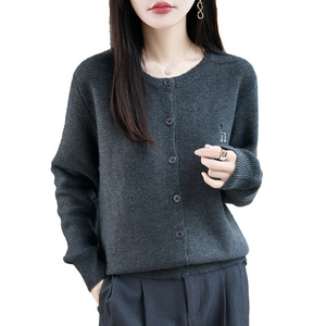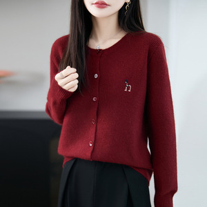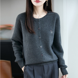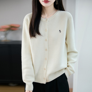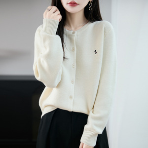 秋季新款彩色小马刺绣精纺针织衫开衫显瘦圆领毛衣女外套女装代发