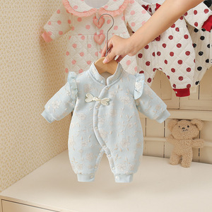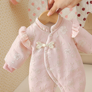 婴儿夹棉秋冬款花花相惜连体衣女宝宝中式新生儿加绒保暖新生儿