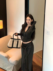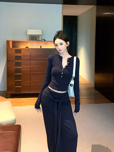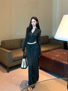 女装套装裙秋季辣妹修身显瘦长袖T恤上衣绑带垂感半身包臀长裙子