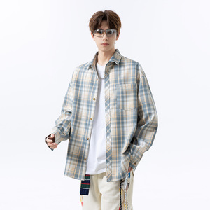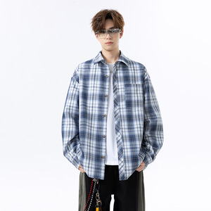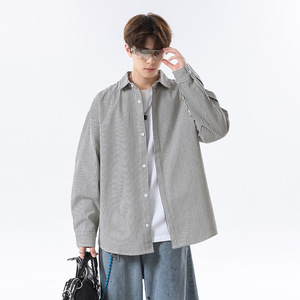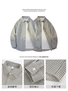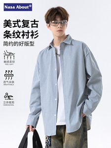 NASA复古条纹长袖衬衫春秋季2025新款宽松休闲青少年痞帅衬衣外套