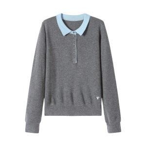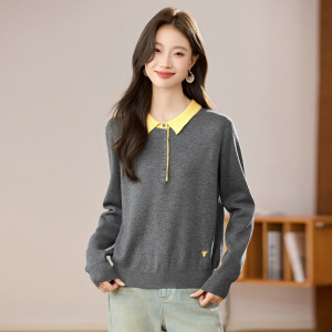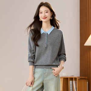 2025秋季新款宽松翻领针织衫遮肚子打底衫时尚气质刺绣套头上衣