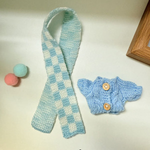 蓝木扣毛衣+蓝格围巾
