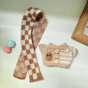 棕条纹扣子毛衣+棕格围巾