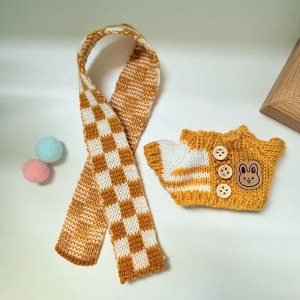 黄条纹扣子毛衣+黄格围巾