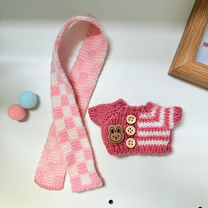 粉条纹扣子毛衣+粉格围巾