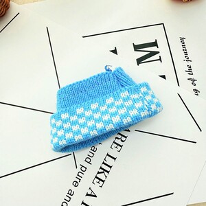 蓝点翻边帽子