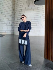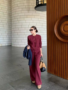 时尚套装女新款简约气质宽松显瘦休闲短外套高腰阔腿裤两件套女