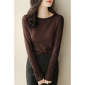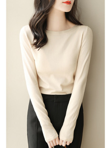 白色优雅百搭修身显瘦一字领毛衣女装秋季新款长袖针织衫打底上衣