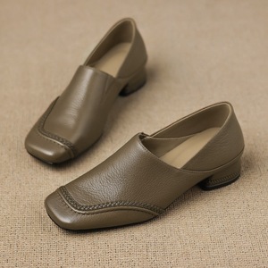 2025新款四季女鞋羊皮编织方头时尚气质轻便舒适浅口单鞋4041大码