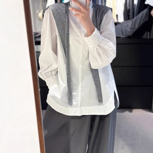 2025秋款百搭棉白衬衫设计感花瓣立领和花边袖减龄小衫长袖不退换
