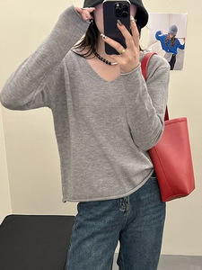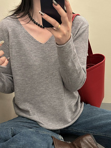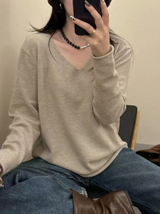 V领薄款针织衫女2025早秋新款长袖上衣宽松慵懒外穿简约显瘦毛衣