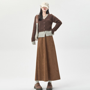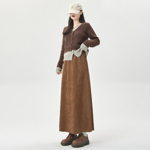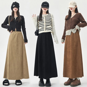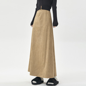 2025秋冬韩版高腰遮胯显瘦过膝中长款鹿皮绒半身裙女新款大摆伞裙
