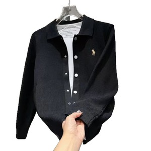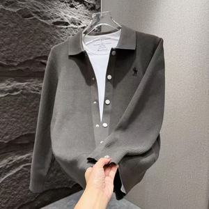 跨境2025早秋小众高版小马刺绣针织开衫男长袖外套百搭男士毛衣