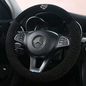 新款汽车方向盘套冬季毛绒山茶花羊羔绒女简约短毛绒保暖车用把套
