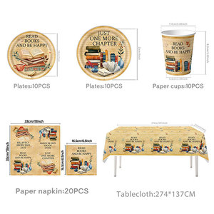 亚马逊复古书籍读书book书籍阅读派对装饰用品一次性桌布纸盘纸杯