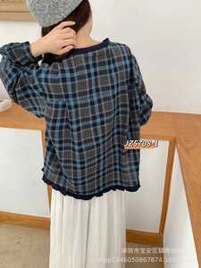 琪镌绘制秋季新款条纹款木耳边下摆拼接款女装休闲宽松衬衫5708-1