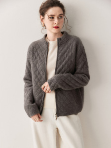 肌理感加厚山羊绒衫女秋冬宽松拉链立领针织棉服开衫百搭外套上衣