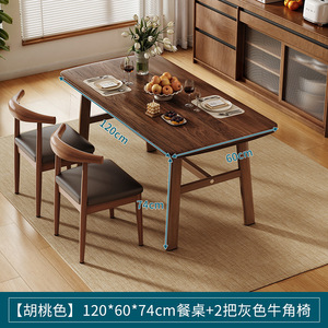 【高性价比组合】胡桃色100*60*74cm+两把黑皮牛角椅加粗加固