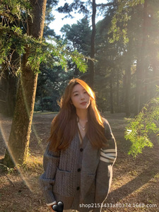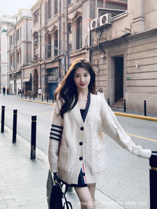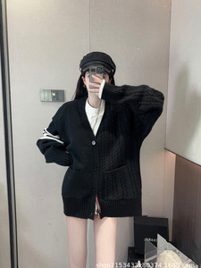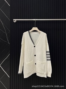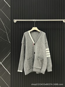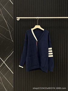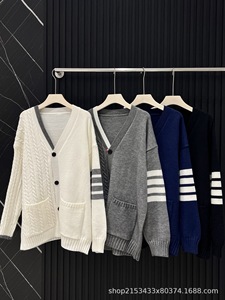 25早秋新款TB撞色针织开衫宽松学院风毛衣V领小众高级感外套