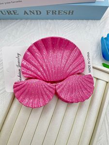 跨境爆款贝壳发卡渐变色闪粉抓发根夹女高级不伤发夹子磨砂细闪