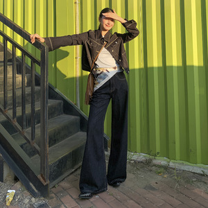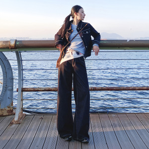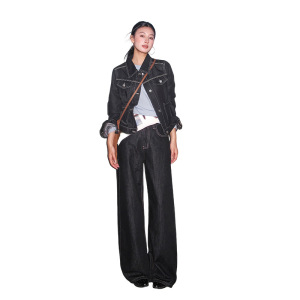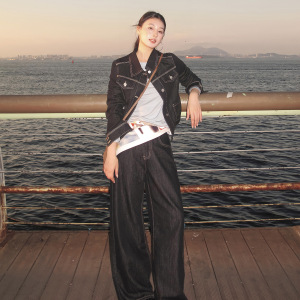 美式解构质感牛仔外套宽松廓形修身显瘦工装夹克套装女牛仔阔腿裤