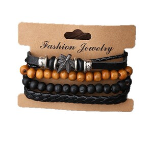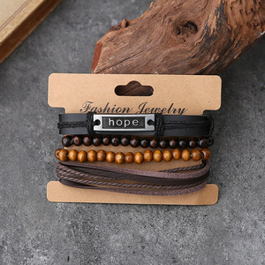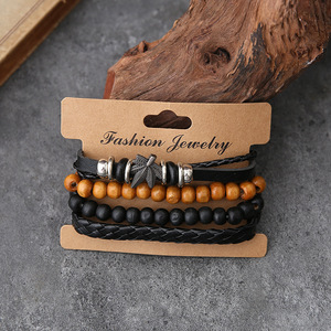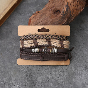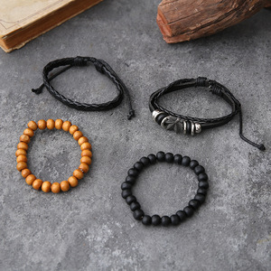 跨境热销男士复古4件套皮质手链套装欧美文艺复古风多层皮革手链
