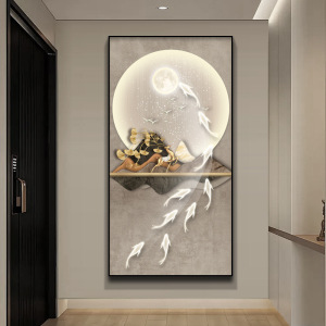 新中式高级感入户玄关装饰画走廊过道竖版挂画客厅沙发背景墙壁画