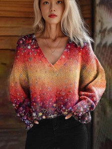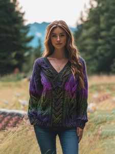 2025亚马逊爆款秋冬宽松V领上衣休闲落肩女装粗针卫衣仿毛